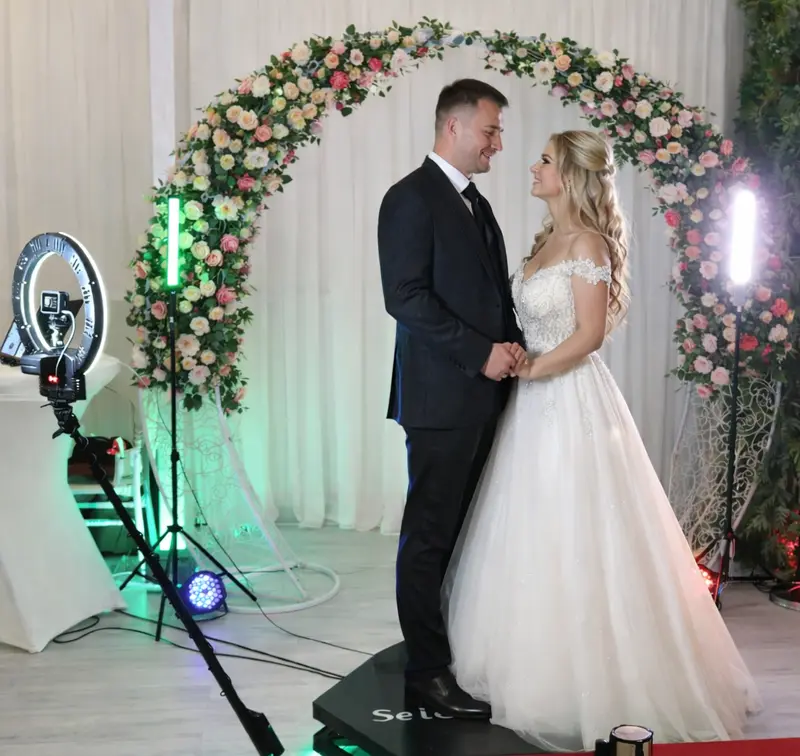 Camera 360 creează clipuri video dinamice și spectaculoase, oferind invitaților o experiență unică și conținut perfect pentru social media. Este o atracție principală la orice eveniment.